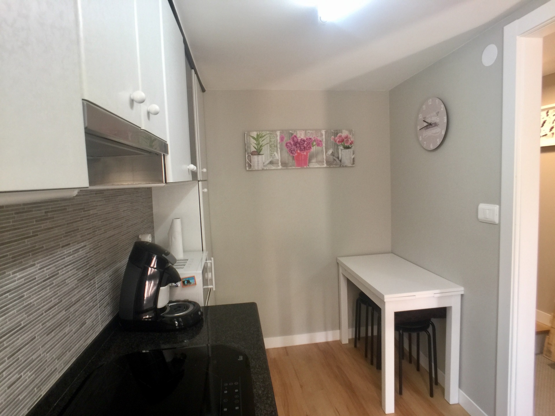 Cocina dotada de horno, vitroceramica , microondas, nevera , cafetera y vajilla.